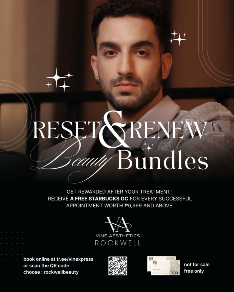 Enjoy exclusive preselling rates at Vine Aesthetics Rockwell and receive a FREE Starbucks GC for the first 100 successful treatments worth ₱6,999 and above—our way of rewarding you for choosing to reset and renew with us.
